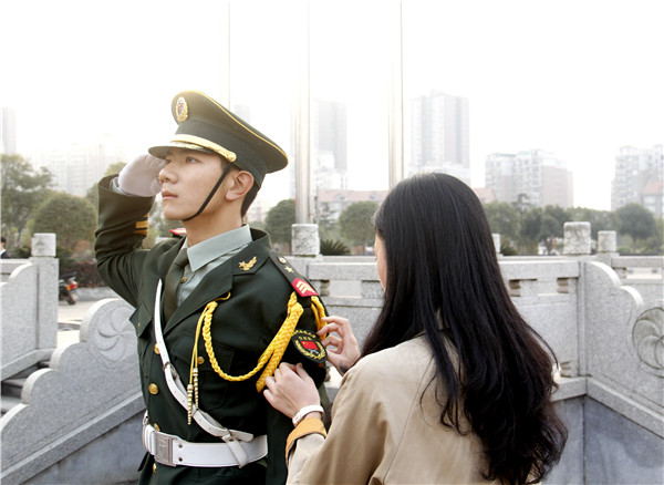 国旗仪仗队老队长作国旗下的发言,激励新队员继承发扬国旗仪仗队的优良传统。随后,校团委老师为国旗仪仗队队员代表佩戴臂章,新老队员交接臂章,并由新队员作国旗下宣誓。至此,我校国旗仪仗队新一届队伍正式建立。