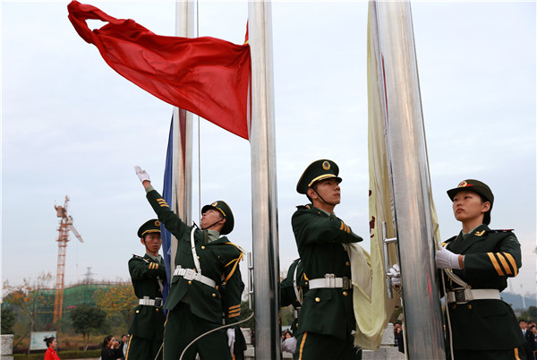 11月6日清晨,我校于含浦校区南大门广场举行主题为“青春共筑爱国情”的爱国主义教育活动暨国旗仪仗队宣誓仪式。参加活动的有学生会、大学生社团联合会、校大学生艺术团、大学生科学技术协会等学生组织全体人员、各届国旗仪仗队队长和上届国旗仪仗队全体队员,校团委书记及校团委老师出席本次活动。