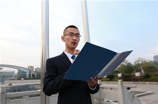迎着晨曦,迎着满载希望的光芒,升旗仪式正式开始。激昂的国歌、飞扬的红旗,是师生们心中最神圣信念的寄托;如炬眼神、挺立身姿,展现的是青年们对肩上最重要责任的坚定。校团委书记对加入国旗仪仗队的新队员们表示欢迎和祝贺,并寄语新一届青年学生干部应努力做到,牢记总书记的教诲,热爱祖国、不忘初心、砥砺前行。