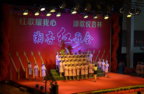 12 月 4 日 晚,湘杏学院在我校东塘校区体育馆举行以“红歌耀我心,颂歌悦杏林”为主题的首届红歌会决赛。学生工作处处长谭琥、校组织人事部副部长张湘明、湘杏学院院长李木清、党总支副书记王云辉、毛芳武、校团委副书记方圆等相关职能部门负责人及全院师生参加活动。