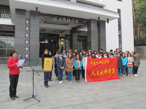 12月13日 ,我校人文社科学院与杨开慧烈士纪念馆共建红色爱国教育活动基地挂牌仪式在杨开慧烈士纪念馆前举行,杨开慧纪烈士念馆主任陈书及人文社科学院相关负责人、师生代表等参加仪式。仪式后,我校师生参观了杨开慧烈士陵园、杨开慧烈士纪念馆和杨开慧烈士故居,深入了解、缅怀了革命先烈杨开慧同志的英勇事迹。