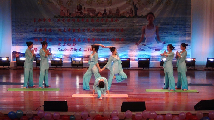 4 月 19 日 晚,瑜伽协会联合太极协会、武术协会在大学生活动中心举行了第二届“全民瑜伽日”闭幕晚会。晚会分为“我是瑜美人”、“伽人倾城”、“我和瑜伽有个约定”三个篇章展开,优美的瑜伽表演、古典的太极展示、激情的武术演练,让观众们近距离感受到了古老养生之术的神奇魅力。