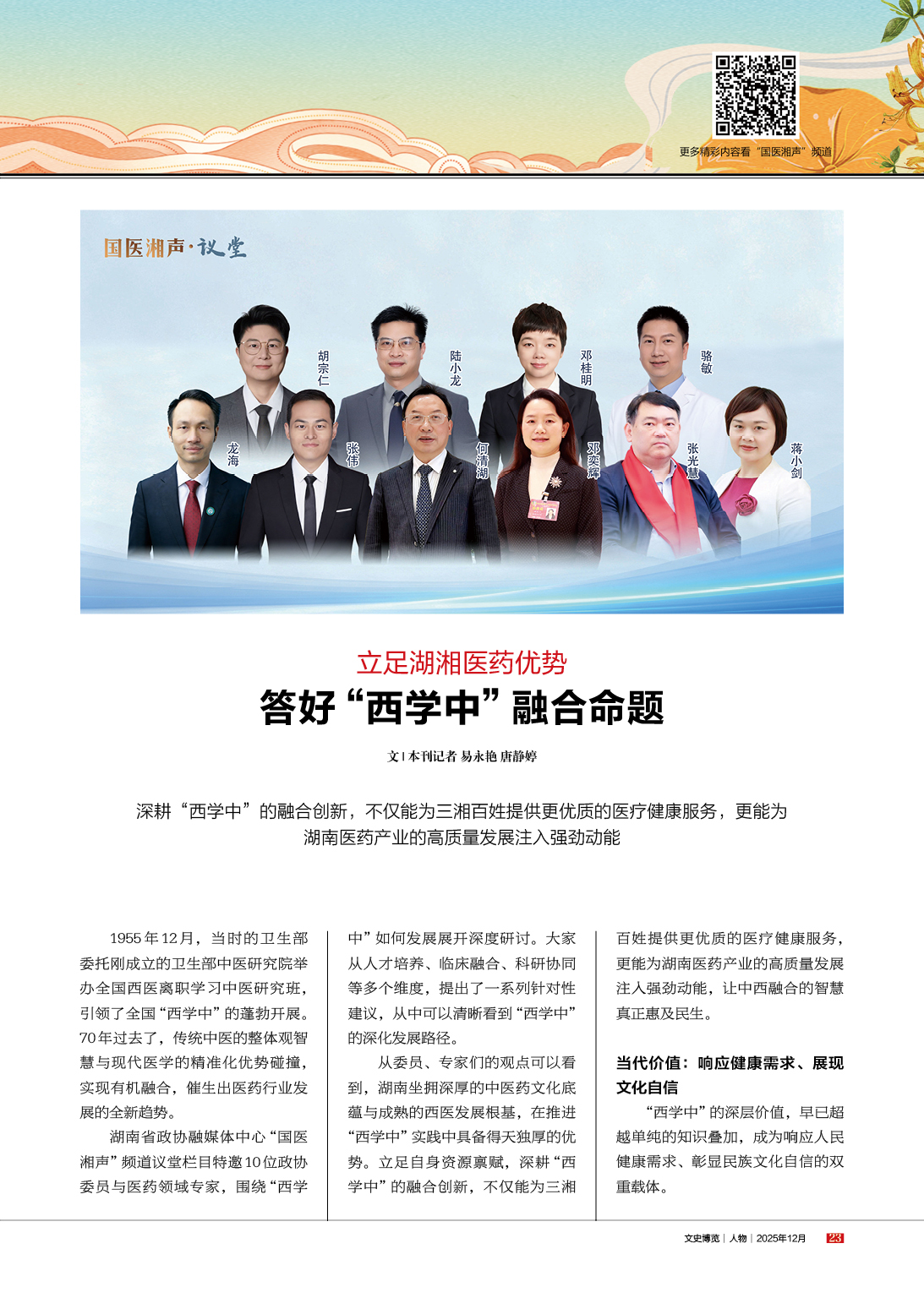 《文史博览·人物》2025年第12期 《答好“西学中”融合命题》