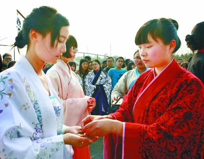 3月16日,主祭为学生簪花。