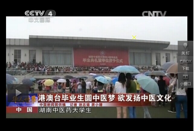 6月30日,中央电视台第四套中文国际频道《华人世界》栏目播出《港澳台毕业生圆中医梦 欲发扬中医文化》 观看视频地址: http://news.cntv.cn/2014/06/30/VIDE1404110522455204.shtml
