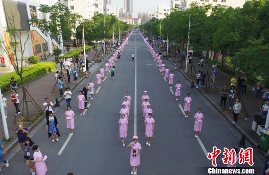 【中国新闻网】湖南中医药大学学生进行千米圣火传递迎护士节
