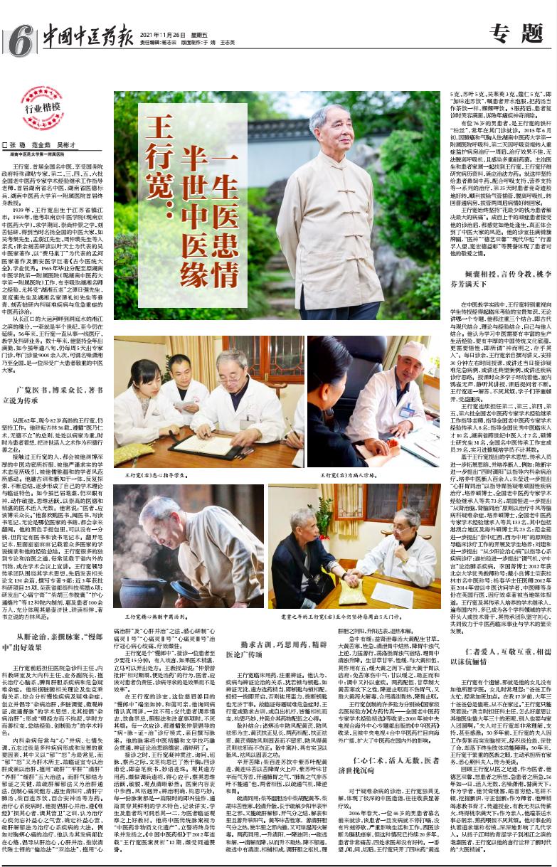 中国中医药报:王行宽:半世中医缘 一生医患情