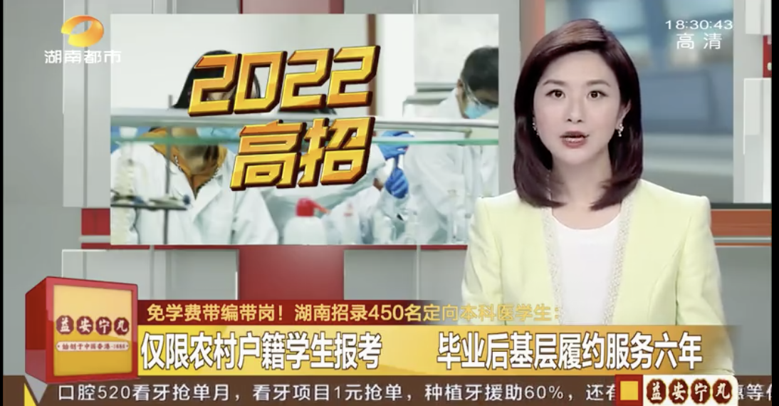都市一时间:免学费带编带岗!湖南招录450名定向本科医学生:仅限农村户籍学生报考 毕...