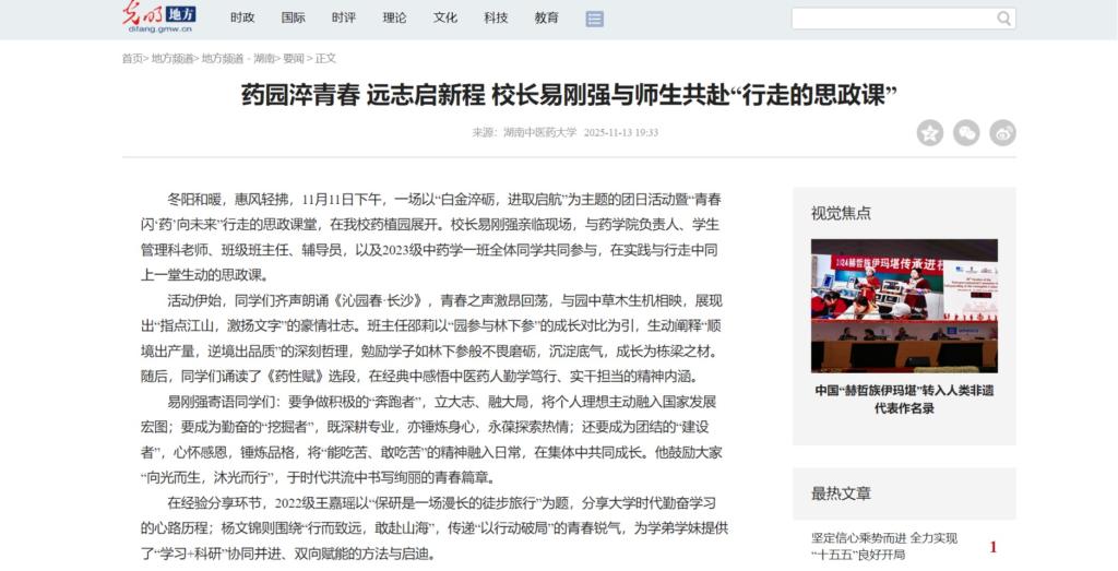 光明网:药园淬青春 远志启新程 校长易刚强与师生共赴“行走的思政课”