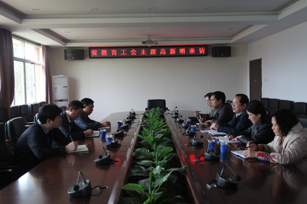 4 月8 日下午, 省教育工会主席高新明、副主席杨舜桃、财务部部长蔡智来我校调研。