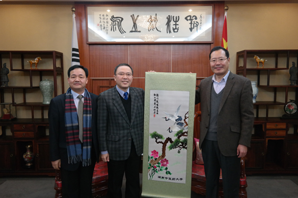 欢迎仪式 合影 学术讲座 学术讲座互动 座谈 12 月 15 日 至 16 日,由韩国圆光大学药学院、韩医学院和韩中关系研究院历史文化研究所等机构 11 位资深教授组成的代表团来校参访,与我校进行中医发展交流。