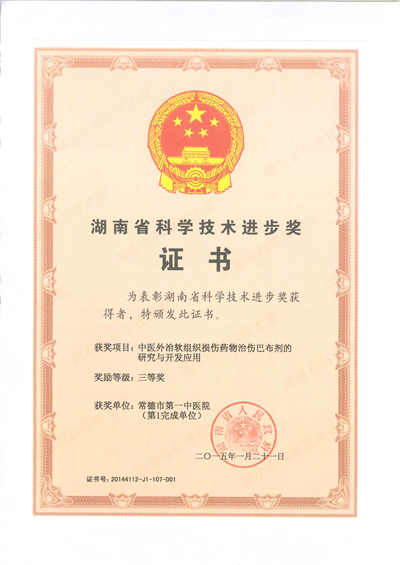 附属常德医院喜获湖南省科学技术进步奖