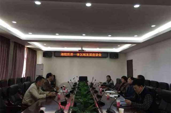 4 月 16 日 上午,民盟湖南省委副主委、邵阳市副市长赵为济一行 3 人前来我校就区校合作事宜开展调研,校(院)党委副书记秦裕辉主持召开了“区校合作及湘赣医养一体区域发展座谈会”。