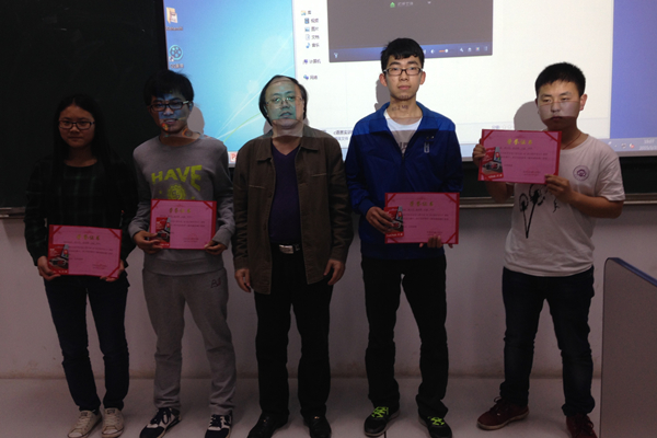 周良荣院长为同学们颁奖并合影留念 老师们认真观看同学们的作品展示 日前,管理与信息工程学院对医学信息工程专业学生在2014年度冬季实训活动中表现突出的优秀团队和个人进行了表彰。