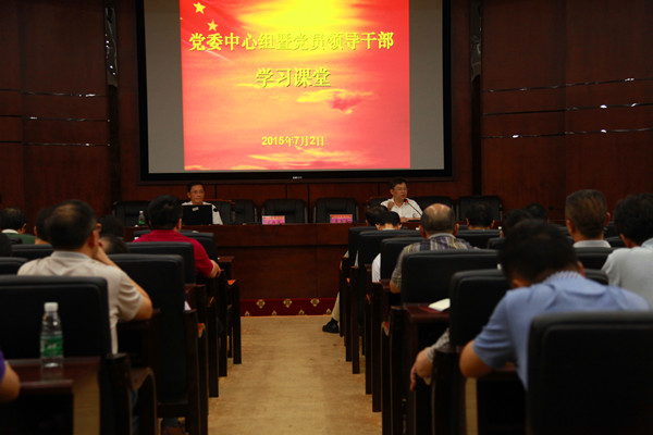 7 月 2 日 下午,我校举行党委中心组学习暨党员领导干部学习课堂,由 校党委副书记、 校长廖端芳 作 《 法治思维与中国特色现代大学治理 》专题辅导报告。