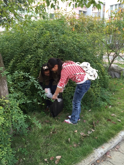 10 月 14 日 下午,学校护理学院和后勤服务总公司物业中心联合开展了“文明校园从我做起从小事做起”捡拾白色垃圾活动。