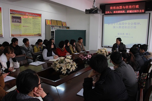 11月27日上午,管理与信息工程学院邀请了我校客座教授陈培勇讲学,主讲“依法治国与依法行政”。