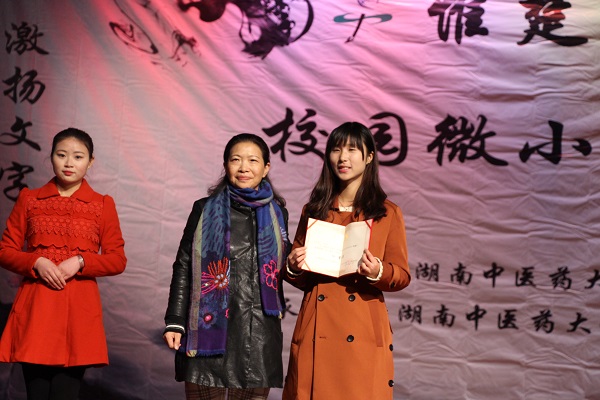 现场颁奖 选手讲解剖析作品 舞台剧表演 11月27日晚,由大学党委宣传统战部主办,校报学生通讯社承办的大学首届“惟楚杯”微小说大赛决赛在含浦校区大学生活动中心举行。