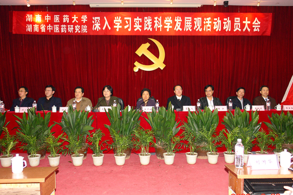 3 月 26 日 药学院院领导、党员干部、教工及学生党支部书记、无党派人士代表等 42 名代表参加了湖南中医药大学深入学习实践科学发展观活动动员大会。