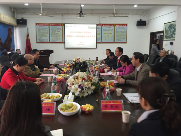 3月30日下午,湘南学院药学院院长张辉、书记毛兰香一行来我校药学院考察,就该校开办中药学专业相关事宜进行学习交流。