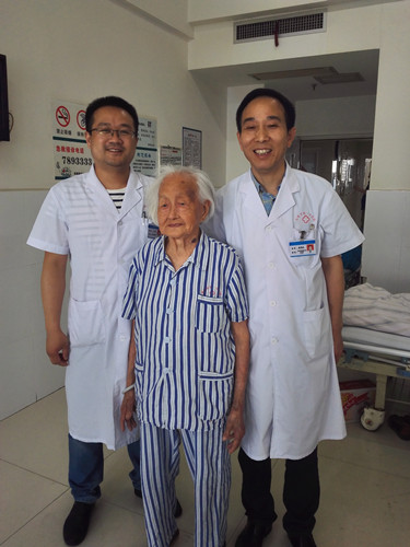 5月12日,在附属常德医院手术室内,以常务副院长刘志军为首的医疗团队仅用了15分钟,为99岁姚珍姑老人完成腰1椎体骨折经皮骨水泥灌注椎体成形术,折磨了她十多天的剧烈腰痛瞬间消失。