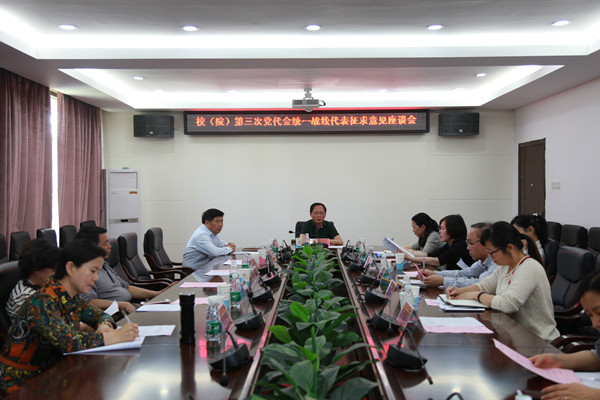 座谈会现场 5月17日下午,校(院)召开统一战线代表专题座谈会,就第三次党代会党委工作报告(草案)、纪委工作报告(草案)征求意见建议。