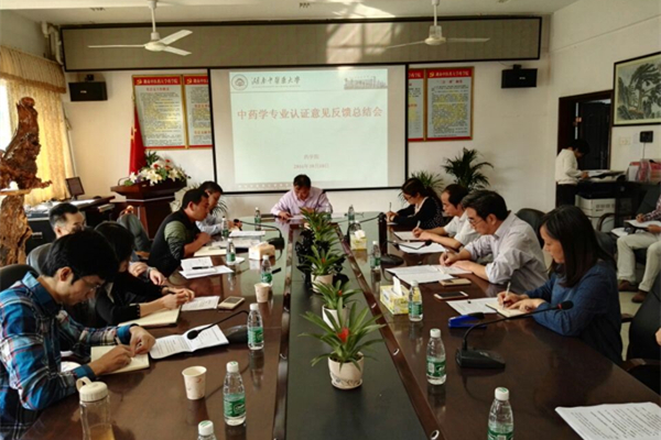 10月10日上午,中药学专业认证意见反馈会在药学院召开,大学副校长何清湖,教务处处长李铁浪、药学院党总支书记张秋雁、副院长夏新华等相关负责人、药学院各教研室主任、教学秘书以及专业认证办成员参加会议。