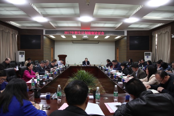 论证会现场 校长、校(院)党委副书记秦裕辉 副校长何清湖 副校长葛金文 3月28日上午,学校在行政楼一楼会议厅召开了2017年招生计划编制论证会。