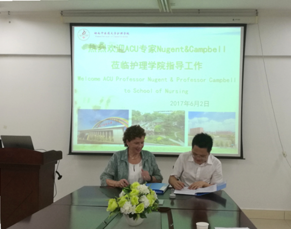 6月2日,澳大利亚天主教大学(ACU)健康科学学院Michelle院长莅临我校护理学院交流,中国顾问李斯佳陪同翻译。