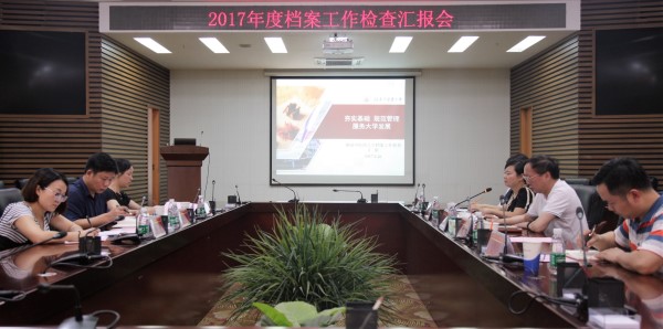 6月26日下午,省档案局宣传教育法规处处长黄光斌、副处长张璇等一行3人来我校检查、指导档案工作,校(院)党委副书记肖小芹接待了黄光斌一行,并在行政楼一楼会议厅主持召开2017年度档案工作检查汇报会。