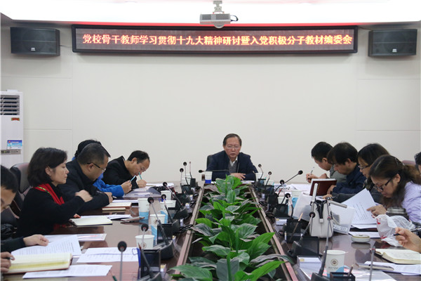 11月30日上午,党校骨干教师学习贯彻党的十九大精神学习研讨会暨入党积极分子培训教材编委会在行政楼二楼会议室召开。