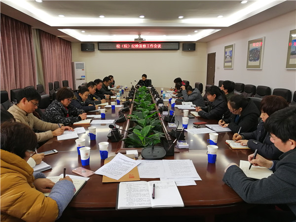 1月8日下午,校(院)2018年第一次纪检监察工作会议在行政楼二楼会议室召开,校(院)纪委书记张玉芬主持会议,校(院)纪委委员、全体纪检监察干部参加会议。