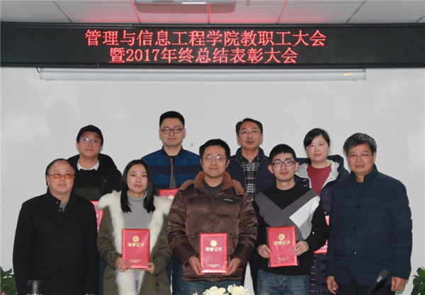 1月19日下午,管理与信息工程学院在学院会议室召开教职工大会暨年终总结表彰大会和党风廉政建设专题会议,副校长彭清华莅临指导,学院全体教职工参会。