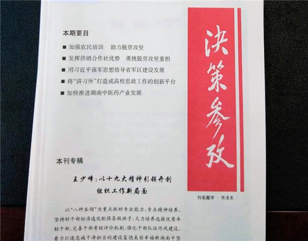 由我校(院)党委书记秦裕辉撰写的《加快湖南中医药产业发展》入刊2018年4月《决策参考》。