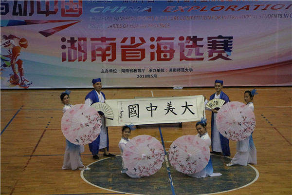 5月26日上午,第三届“留动中国-在华留学生阳光运动文化之旅”湖南省选拔赛在湖南师范大学体育馆开幕。