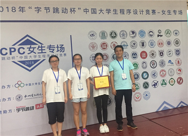 第三届“字节跳动杯”中国大学生程序设计竞赛女生专场于5月27日在浙江省杭州市杭州电子科技大学落幕,由我校信息科学与工程学院刘伟老师指导、16级计算机科学与技术专业曾荣丽、鲁荣明和黎杨三位同学组成的HNUCM-Gir...