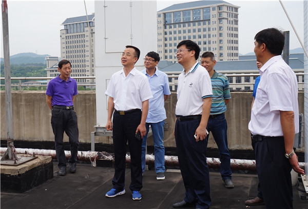 6月12日上午,长沙市委副秘书长、市委办公厅主任、市蓝天办主任曹再兴一行来我校国际教育学院楼顶国家空气自动监测站查看,彭清华接待了曹再兴一行。