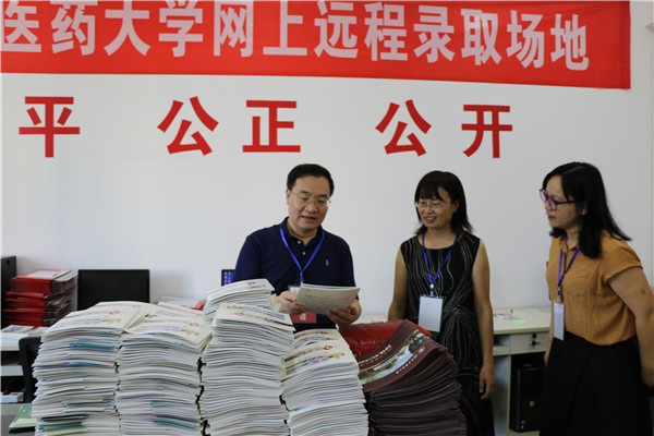 7月20日,湖南省一本批次投档,副校长何清湖、葛金文到学校2018年招生录取现场,检查招生录取工作,看望慰问一线工作人员。