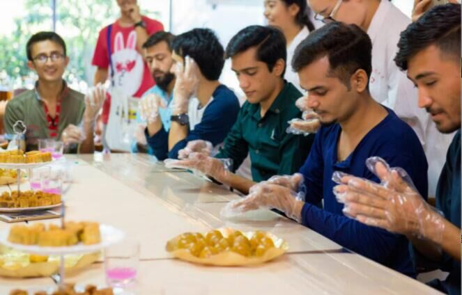 9月20日,湖南中医药大学药食同源工程中心不时传出欢声笑语,10多名来自巴基斯坦、非洲的留学生在学做药膳月饼。