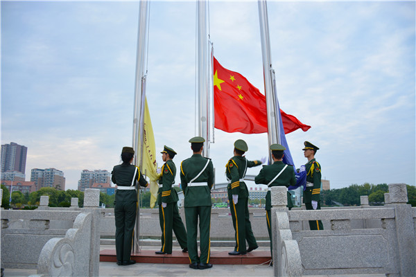 庆祝中华人民共和国成立69周年升旗仪式庄严举行