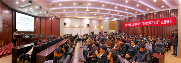 11月8日中午,我校140多位留学生代表齐聚一堂,在国际教育学院报告厅举行“新时代学习大会”主题班会。