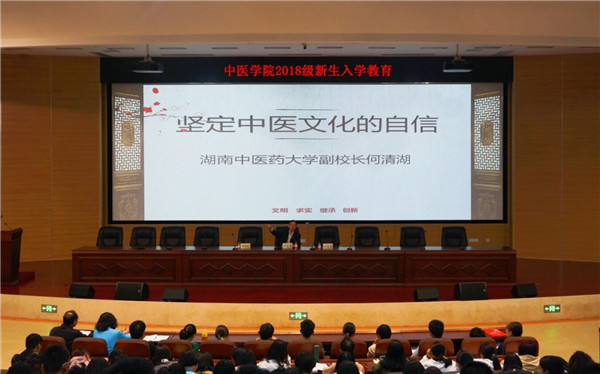 11月2日晚,中医学院2018级新生入学教育活动在三号教学楼学术报告厅举行。