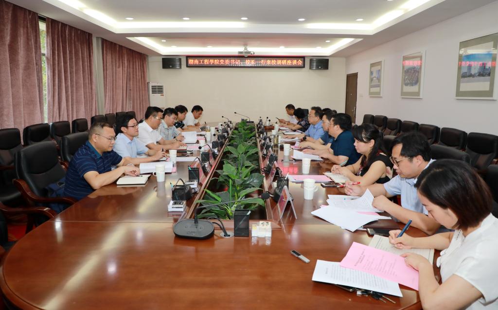 7月8日上午,湖南工程学院党委书记陈岳堂,党委副书记、校长易兵,党委委员、副校长罗毅平一行来我校座谈交流,座谈会在行政楼二楼会议室举行。我校(院)党委书记秦裕辉、校(院)长戴爱国、副校长葛金文等参加调研座谈。会议由葛金文主持。戴爱国对陈岳...