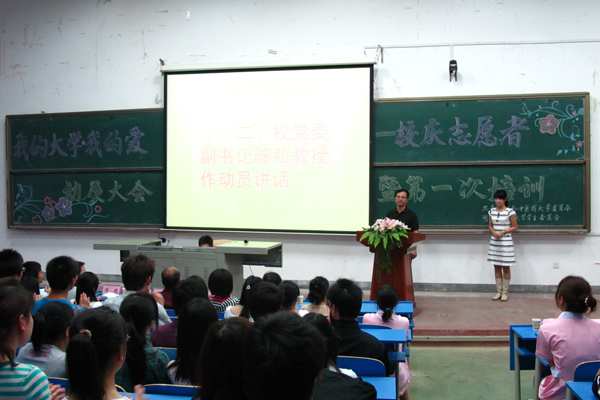 5 月 11 日晚,“我的大学 我的爱”——校庆志愿者动员大会暨第一次培训在我校含浦校区 2506 教室举行。