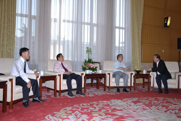 8 月 29 日 下午,全国人大常委会副委员长、农工民主党中央主席桑国卫在湖南省政协副主席、农工民主党湖南省委主委龚建明陪同下,于北京人民大会堂亲切接见了我校党委书记蔡光先、校长廖端芳一行。