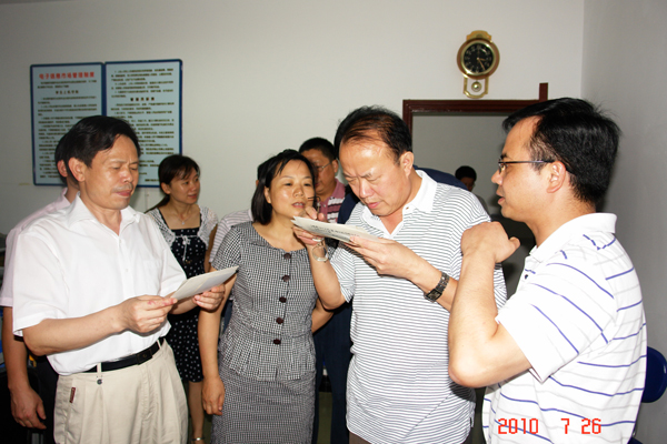 7 月 26 日 ,我校党委书记蔡光先、党委副书记、副校长黄政德、党委副书记陈弘至东塘校区视察我校招生工作。