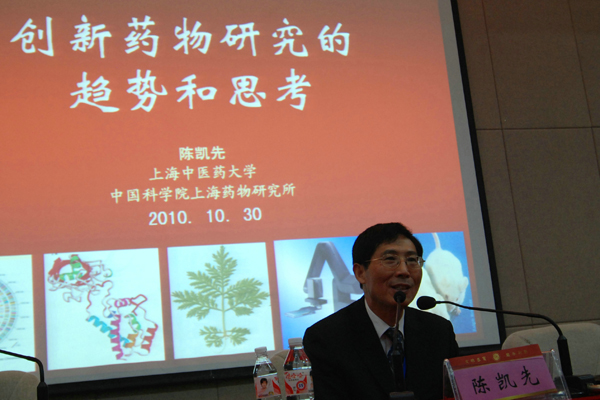 10 月30 日下午 ,上海中医药大学校长、中国科学院院士陈凯先教授应邀来我校做了题为“创新药物的趋势和思考”学术报告。