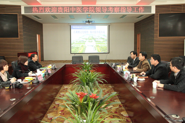 3月25日,贵阳中医学院党委宣传部部长吴大明、团委书记赵芳、理论科科长罗玲来我校考察,就新校区建设规划和校园文化建设展开经验交流和探讨。