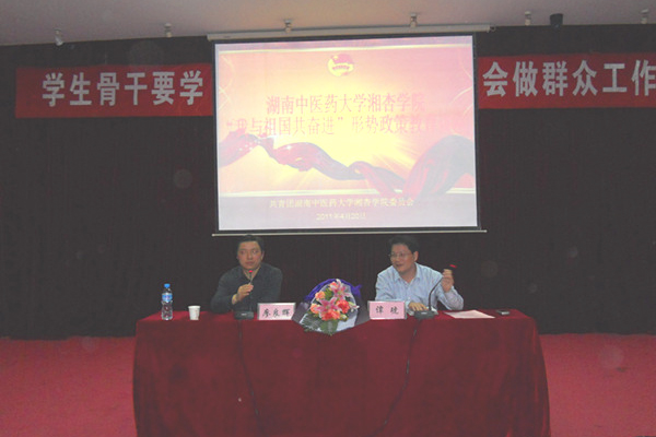 4 月 20 日 晚,我校东塘校区学术报告厅内座无虚席, 团省委常委、学校部部长、省学联秘书长 廖良辉出席湘杏学院“我与祖国共奋进”形势与教育讲座暨第2 期班团学干部培训班现场,为 600 余名师生带来了一场题为“学...