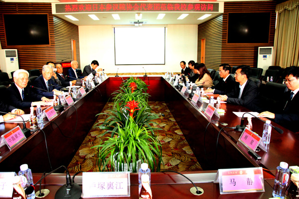 会议现场 廖端芳校长向代表团赠送礼物 10 月 14 日 下午 ,以日本参议院协会副会长宫琦秀树为团长的日本参议院协会代表团一行 10 人莅临我校访问,中央对外联络部经联中心国际交流处处长刘景华、省外事侨务办公室礼...